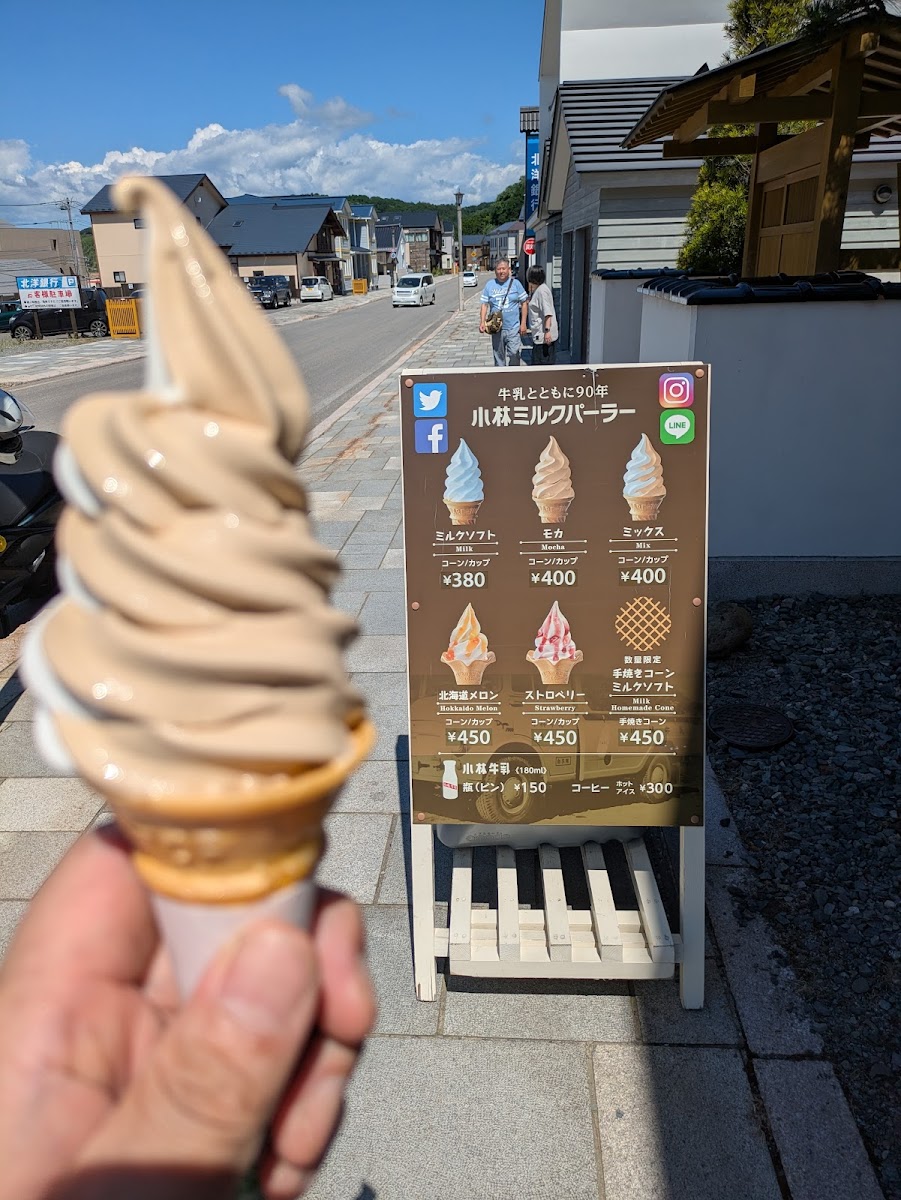 Welcome to Kobayashi Milk Parlor, where creamy dreams come true in the heart of Hokkaido! This charming ice cream store is a haven for dessert lovers, located at 59 Nakautacho, Esashi. Visitors rave about the delightful flavors, especially the Mocha Mix Soft Cream, which strikes a perfect balance of sweetness without overwhelming the palate. Guests have also enjoyed the rich and crunchy hand-baked cones, a standout due to their slightly sweet, cookie-like texture and delightful thickness.